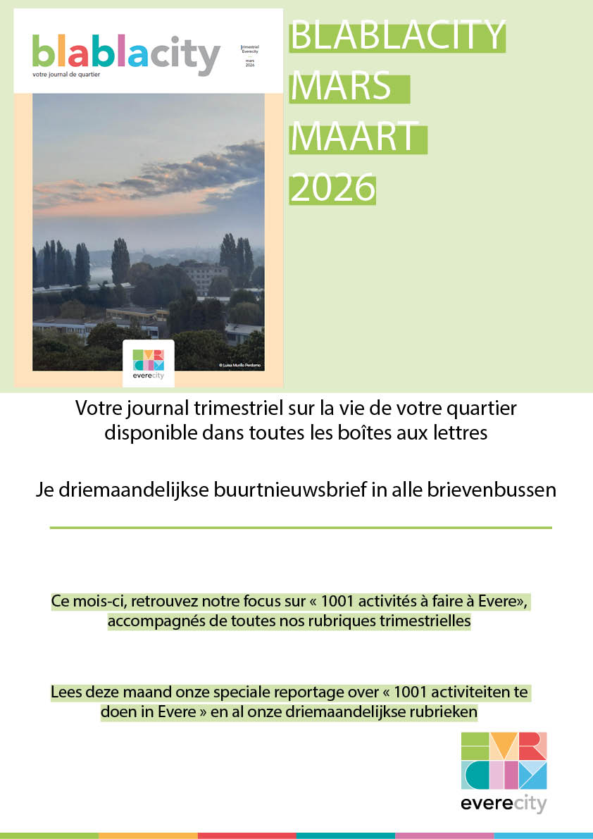 In deze nieuwe editie nemen we u mee op ontdekking naar vrijetijdsactiviteiten in de gemeente Evere en zetten we burgerinitiatieven van onze bewoners in de kijker. Het volledige overzicht van deze activiteiten vindt u op pagina 9 en 10.